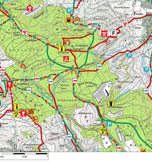 • Von Uhlbach auf dem SAV-Weg mit rotem Strich unterhalb des Götzenberges vorbei zum Tor und weiter zum Kernenturm, 4 km